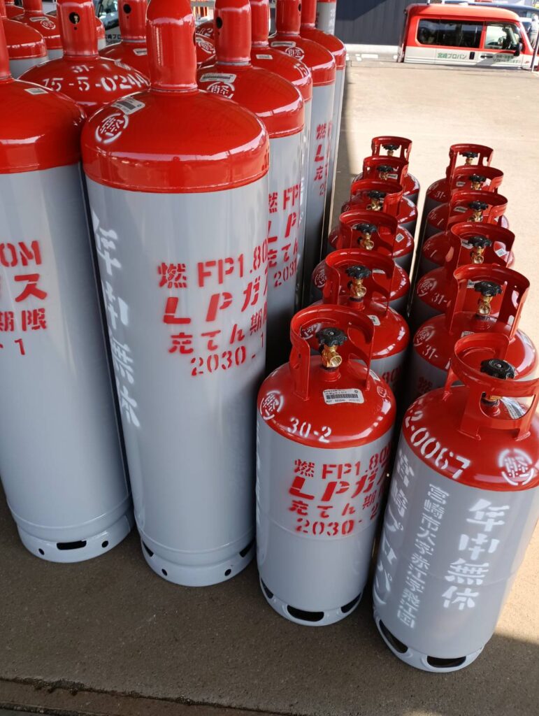 本日、検査を終えたLPガスボンベが戻ってきました。